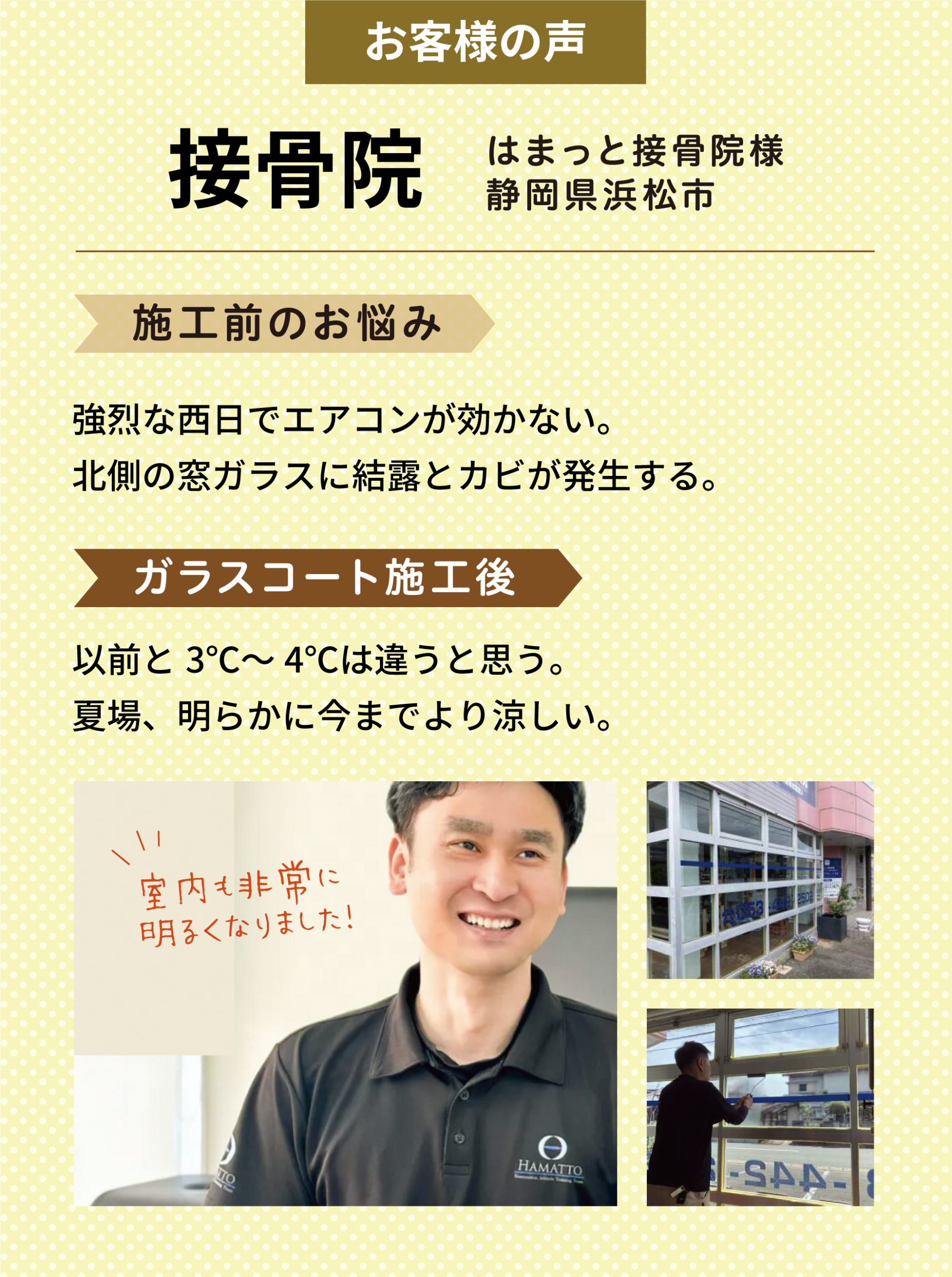 営業に支障がないよう、施工の段取りをしてくれて助かりました。
